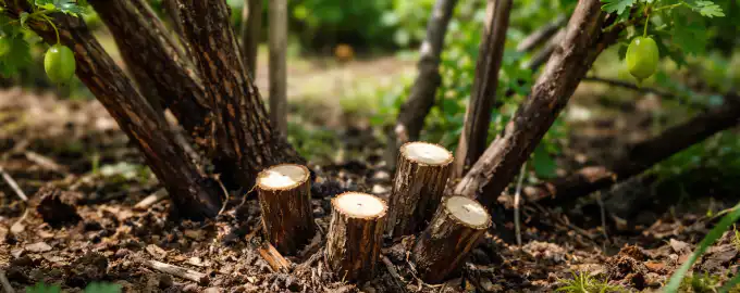 Krusbärsbuskar växer snabbt över och förvandlas till taggiga, ogenomträngliga snår, där bären blir grunda och sjukdomar sprids snabbt. Att ta bort gamla