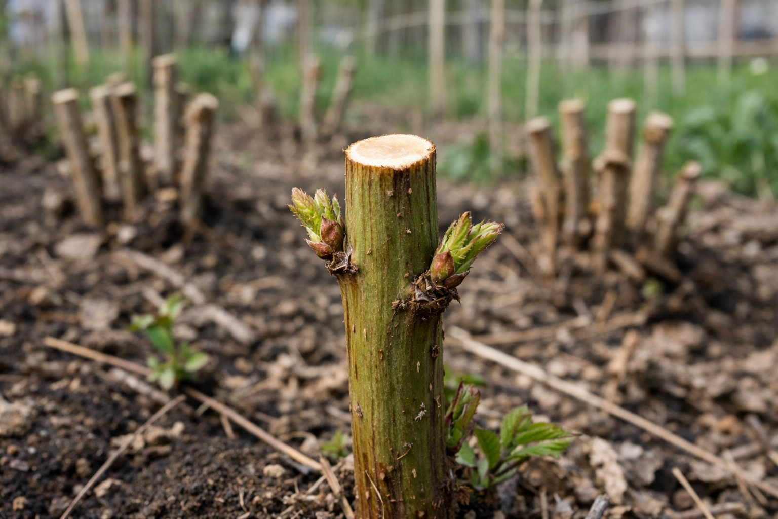 Sidoskotten ska försiktigt skäras ner cirka femton centimeter till den första friska knoppen.