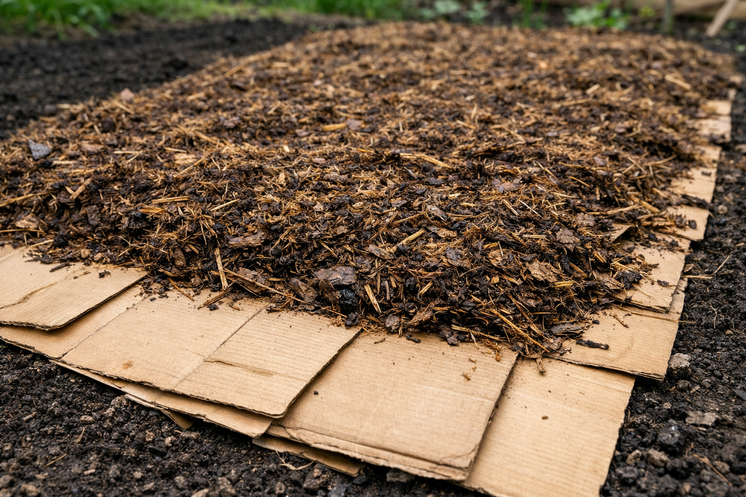 Det är bättre att välja vanlig brun wellpapp utan glansig film för att undvika onödiga kemiska föreningar i marken.