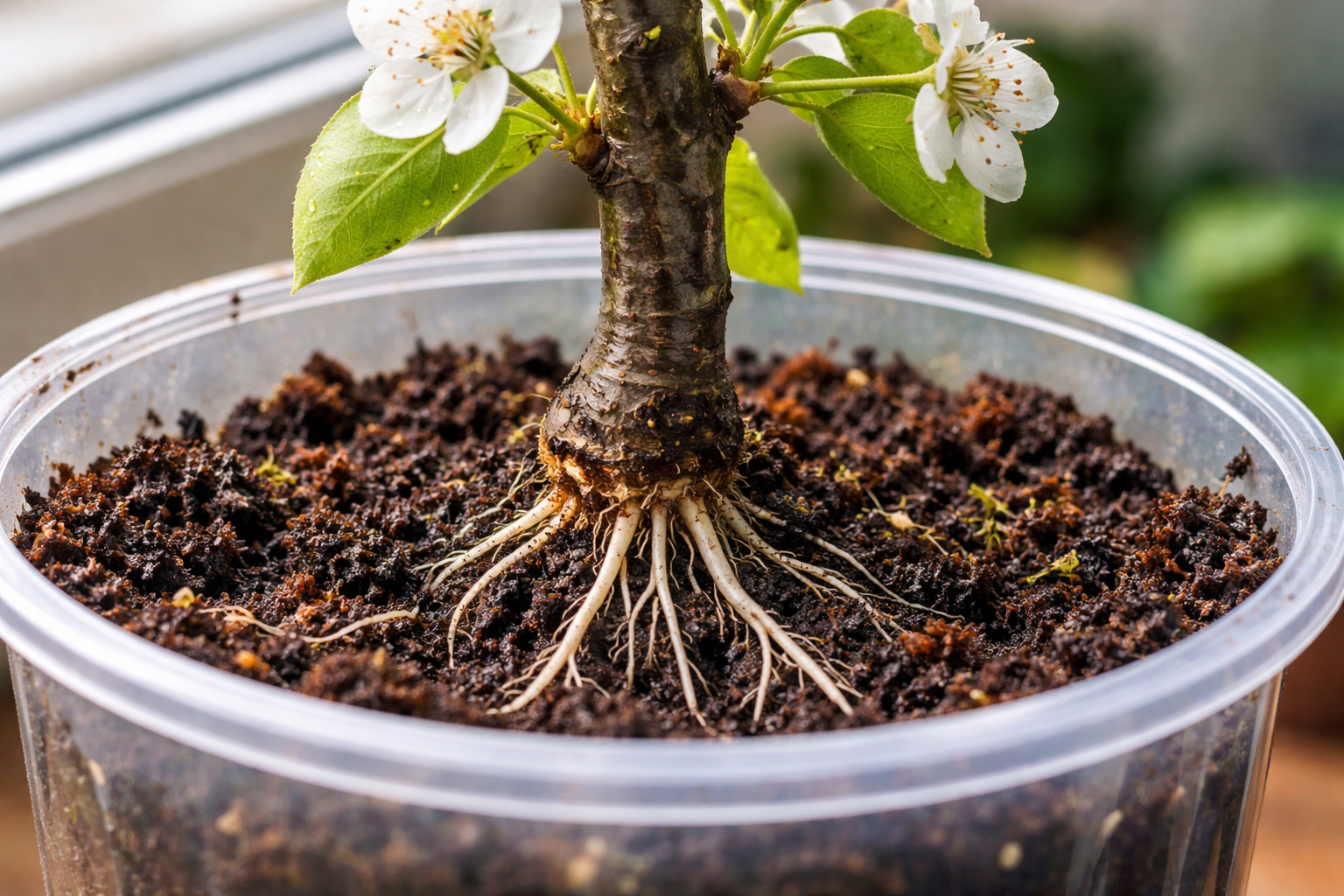 Istället för att i onödan vänta på frukt i en burk med vatten, bör den skurna grenen förberedas för korrekt rotning. Endast skapandet av speciella mikroklimatförhållanden ger verkliga resultat.