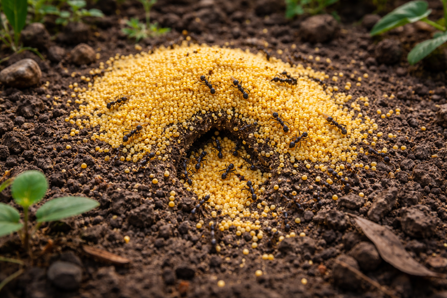 Myror i rabatter förstör skördar och sprider bladlöss, men enkla gryn från ditt köksskåp kan lösa problemet på ett par dagar utan skadliga kemiska behandlingar.