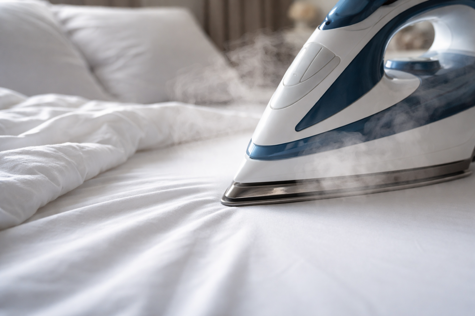 Hemlighet: Att stryka sängkläder från undersidan med ånga tätar bokstavligen mikrosprickor i bomullsfibrerna, vilket förlänger tygets livslängd och förhindrar ludd.