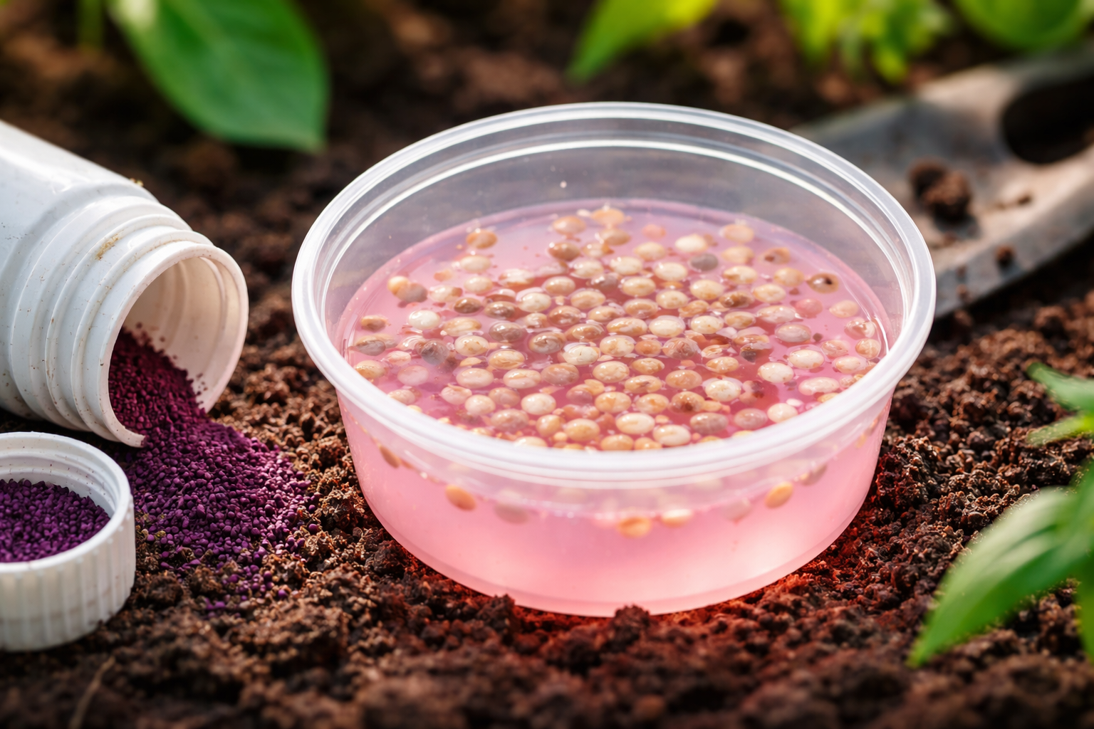 Den ljusrosa färgen är idealisk för säker desinfektion av utsäde