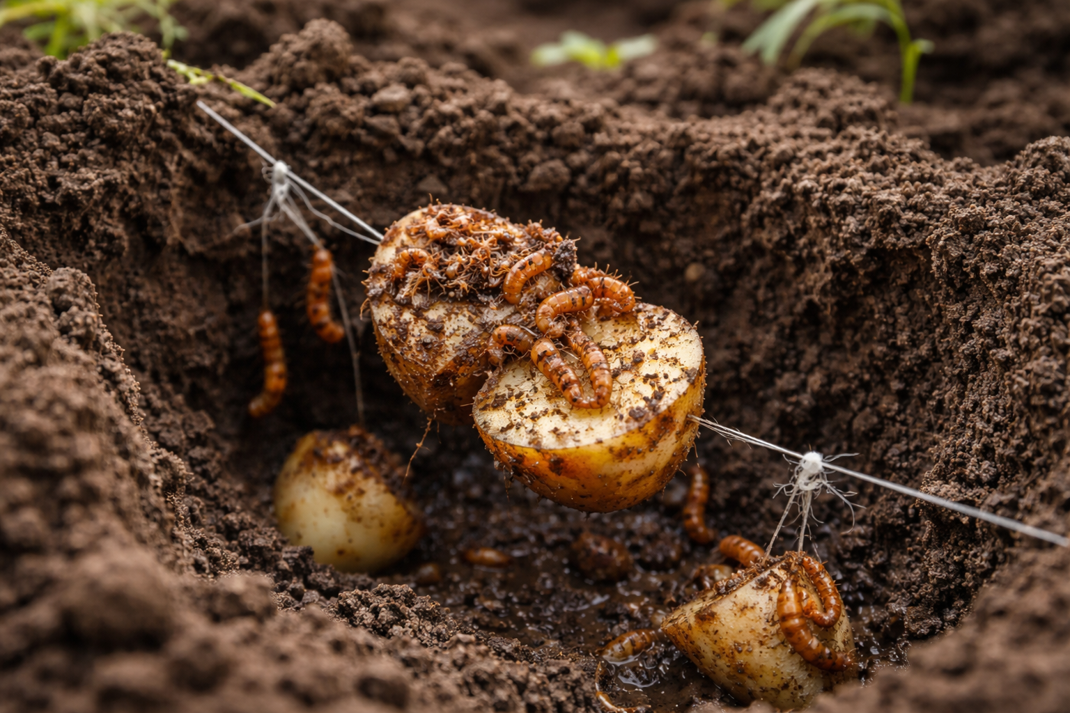 Efter några dagar grävs sådana beten upp tillsammans med skadedjuren som ackumulerats i dem. Detta gör att en betydande del av populationen kan avlägsnas mekaniskt innan huvudgrödorna planteras.