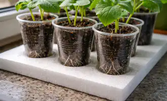 Stänk jorden under roten rikligt med varmt vatten för att stimulera kraftig tillväxt