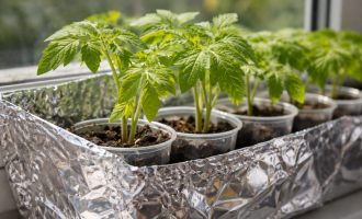 Placera reflekterande folieskärmar bakom krukorna för att omdirigera strålarna.