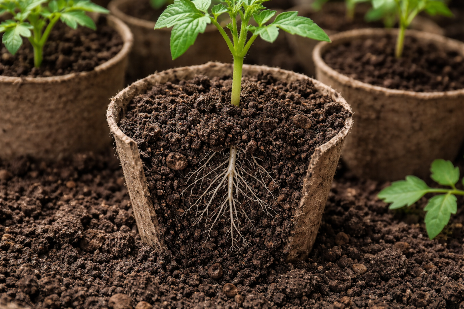 För korrekt utveckling rotsystem behöver konstant stimulans. I fluffig köpetorv växer rötterna för snabbt och förblir tunna och bräckliga. När dessa växter utsätts för verkliga utomhusförhållanden blir de mycket stressade.