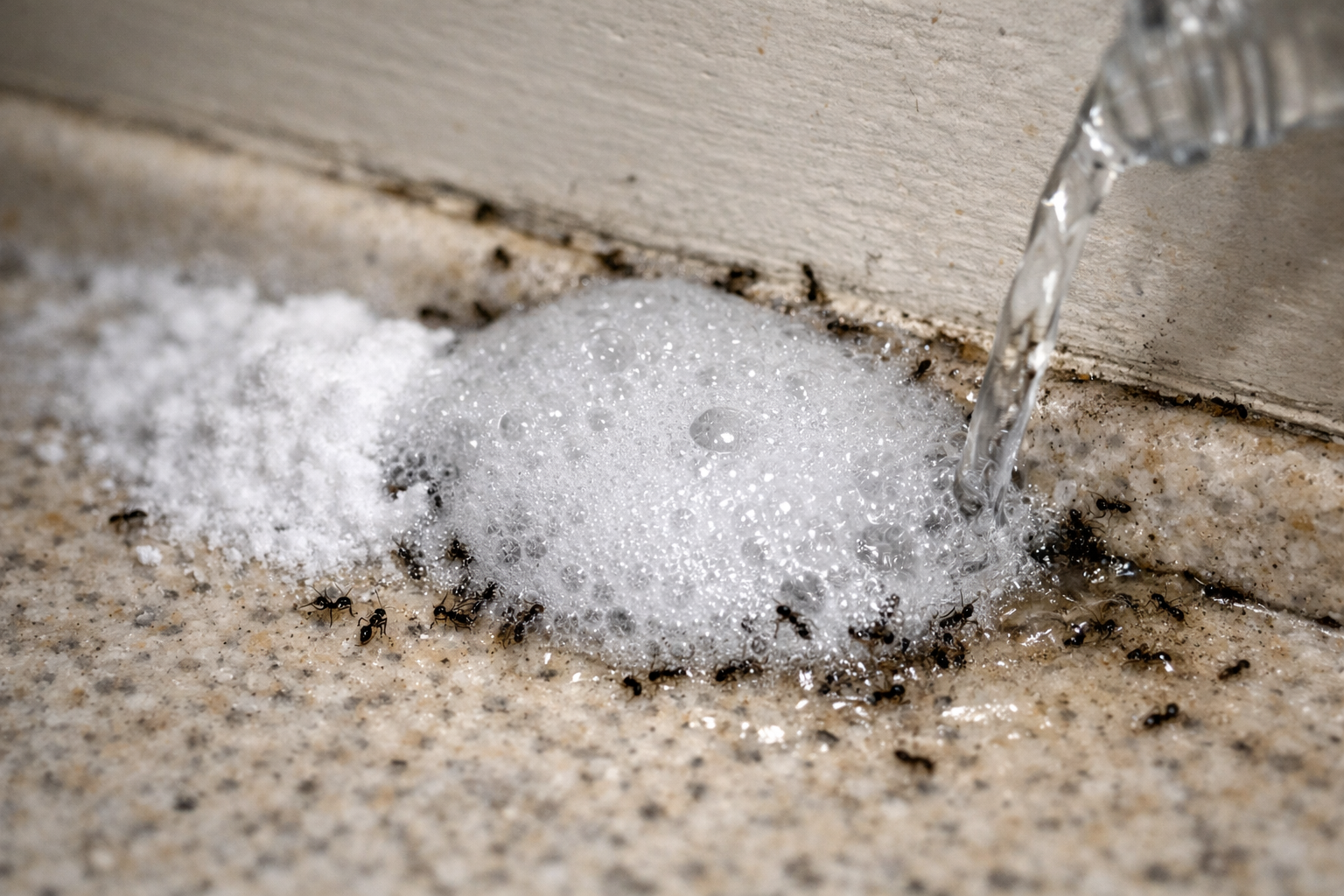 När en alkali och en syra möts uppstår en våldsam kemisk reaktion med frigörande av koldioxid. För insekter blir denna väsande blandning en oöverstiglig barriär. Bakpulver förstör skadedjurens yttre skal och bord vinäger förvirrar deras navigationsinställningar.