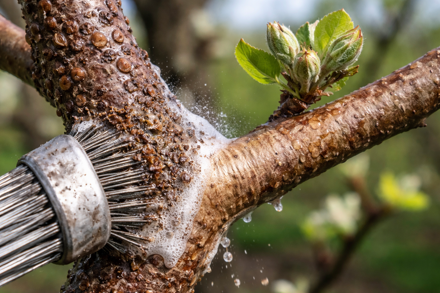 Den vanliga vårkalkningen fungerar endast som en svag förebyggande åtgärd, men är absolut inte i stånd att förstöra de individer som redan har etablerat sig på barken.