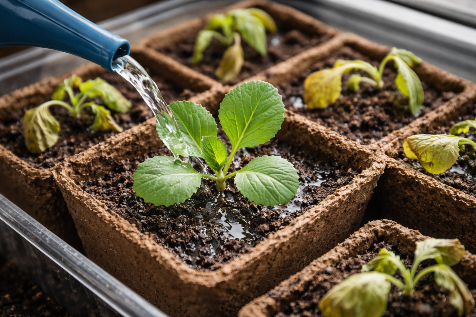 Det andra vanliga misstaget är felaktig vattning. Kål älskar fukt, men i täta krukor är det lätt att göra ett riktigt träsk. Detta kan leda till en farlig stagnation av fuktvilket blockerar syretillförseln till rötterna. Som ett resultat kvävs rotsystemet och börjar ruttna, medan den ovanjordiska delen paradoxalt nog torkar ut av uttorkning. Även överflödigt vatten framkallar utvecklingen av farliga svampsjukdomar som svart ben.