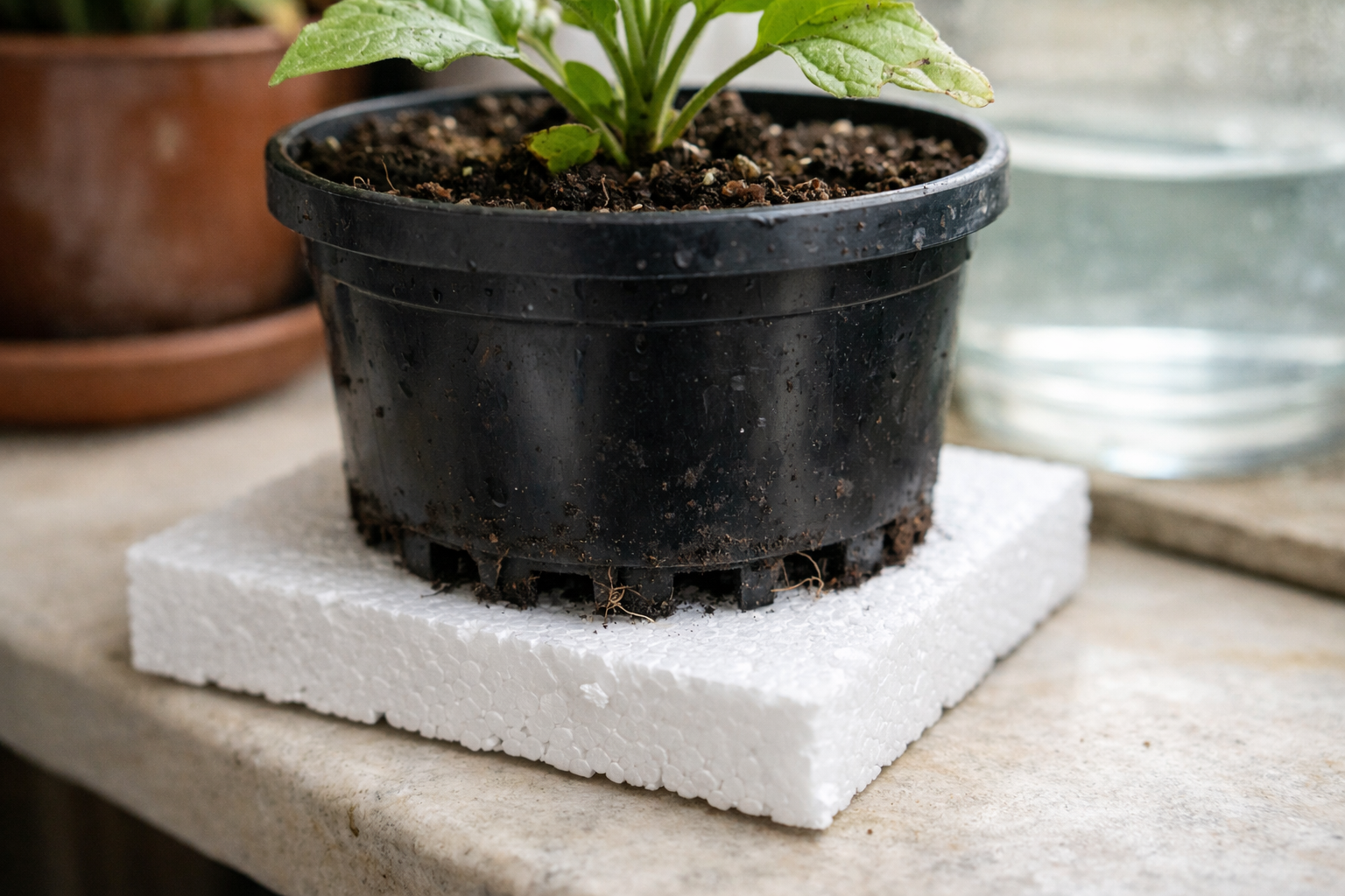 ”Mörka krukor blir varmare i solen, vilket leder till att de späda rötterna nära väggarna torkar ut.”