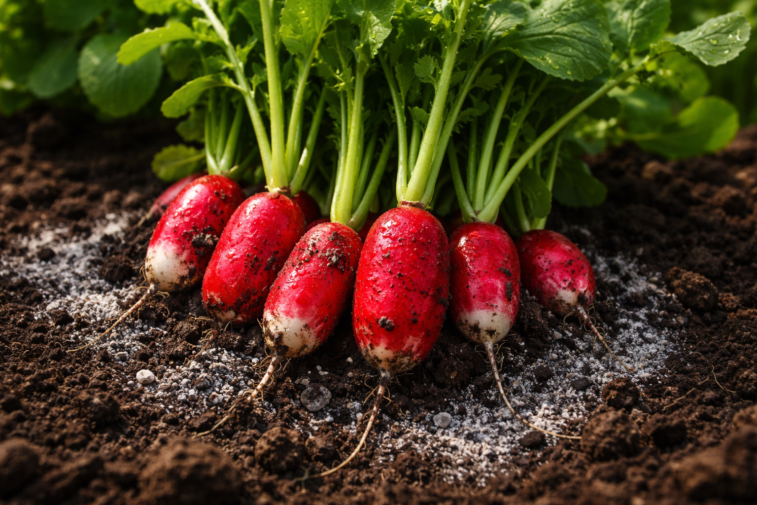 Var särskilt uppmärksam på vatten. Rädisor består till 90 procent av fukt. Om jorden är torr i till och med en halv dag blir huden grov och tillväxten stoppar. Jag använder mulching ett tunt lager av gräsklipp eller hö – det håller kvar fukten och förhindrar att marken överhettas i vårsolen.