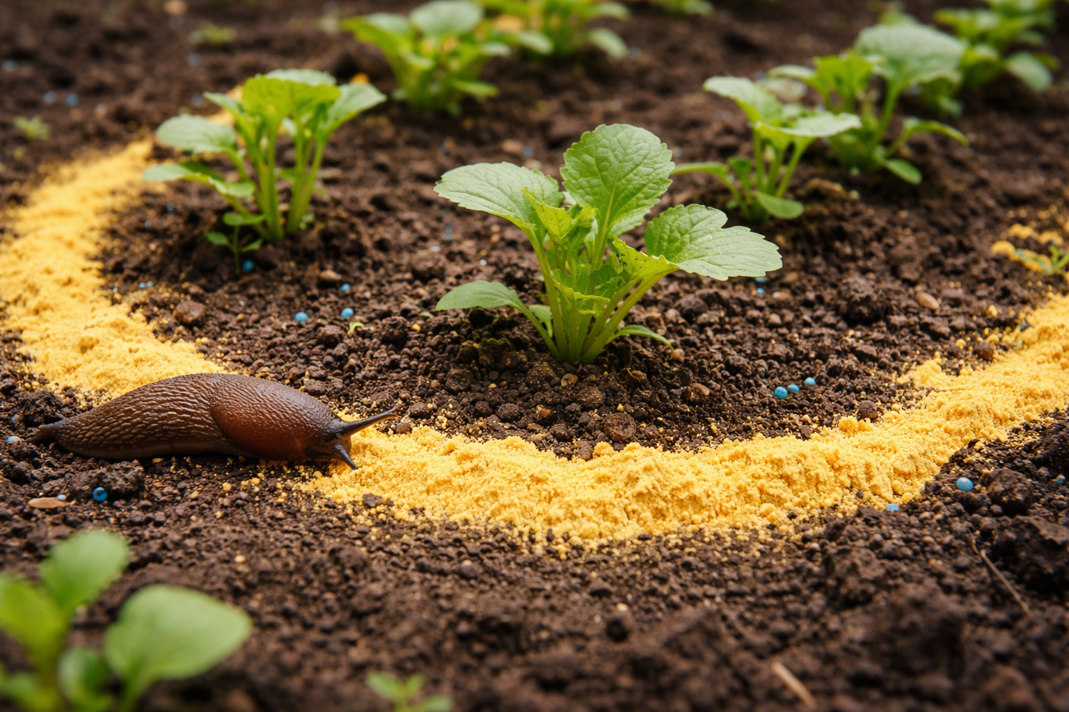 Många trädgårdsmästare underskattar denna prisvärda produkt. Men torr senap fungerar som ett kraftfullt naturligt avstötningsmedel på sängarna. Hemligheten med dess effektivitet ligger i den känsliga strukturen i blötdjurens buk, för vilken kontakt med det stickande ämnet är dödligt eller extremt smärtsamt.