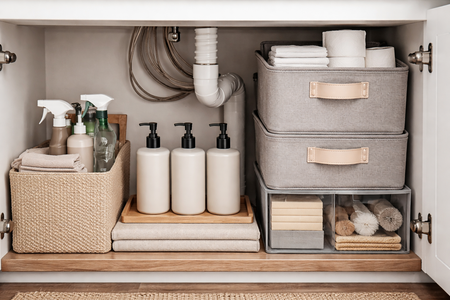 Förvara småsaker och kosmetika i slutna, ogenomskinliga förvaringsskåp.