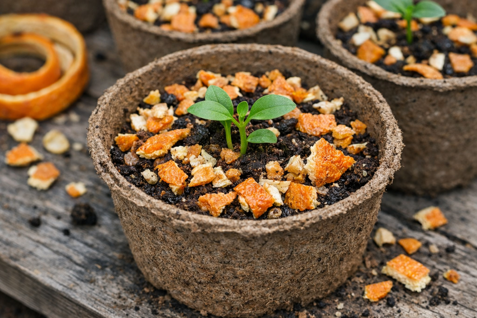 Fördelarna med denna metod har bevisats i praktiken av många agronomer. Apelsinskal är rika på eteriska oljor, kalium и fosfor. Dessa element är avgörande för att gröna husdjur ska kunna bygga upp ett starkt rotsystem i den begränsade volym som en plantkopp utgör.
