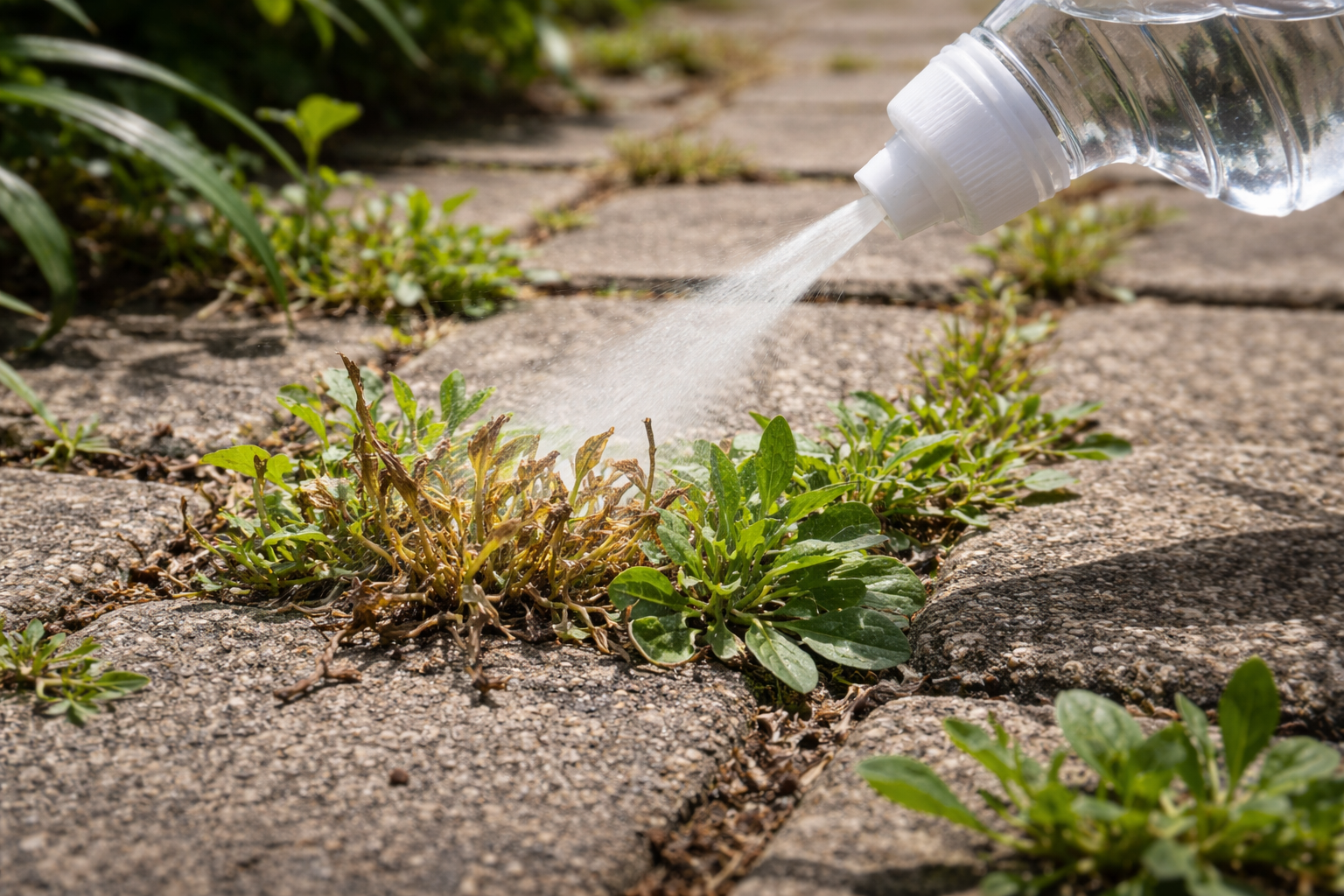 Hemligheten ligger i det faktum att ättiksyra drar omedelbart ut fukt ur bladcellerna. Växten får en svår chock och vissnar snabbt under det aggressiva solljuset. Till skillnad från kemikalier som köps i butik bryts denna produkt ned i marken och skadar inte miljön.