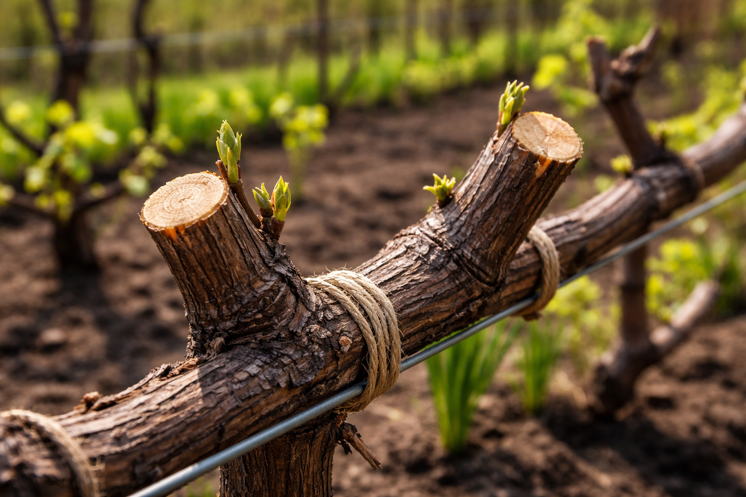 Viktigt tips: Klipp vinstocken strikt vid internoderna och lämna en liten skyddande stump ovanför toppknoppen för att förhindra att patogener tränger in i vinstockens vitala vävnader.