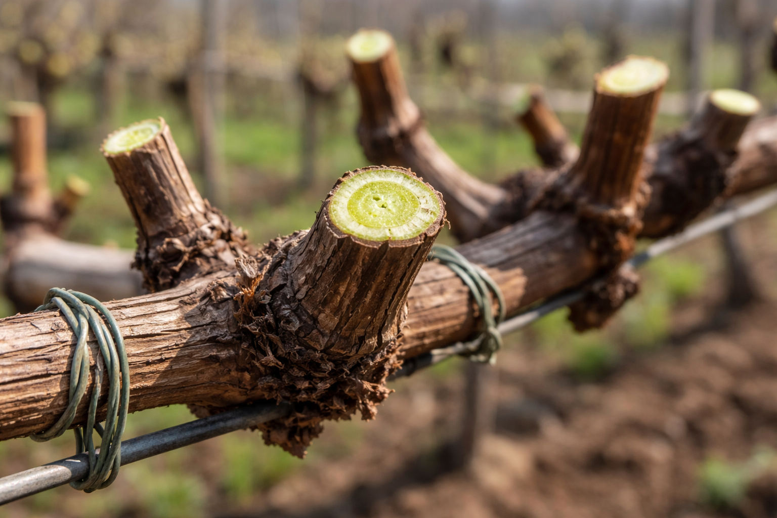 Avbryt gallringen omedelbart och dra åt vinrankan med en mjuk tråd strax under såret tills savflödet upphör.