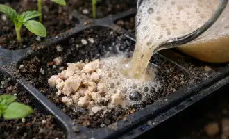 Om jorden är för tung och tät, gör små fördjupningar bredvid stammen med en vanlig träpinne så att fukten omedelbart försvinner ut i jorden utan att sprida pölar på ytan.