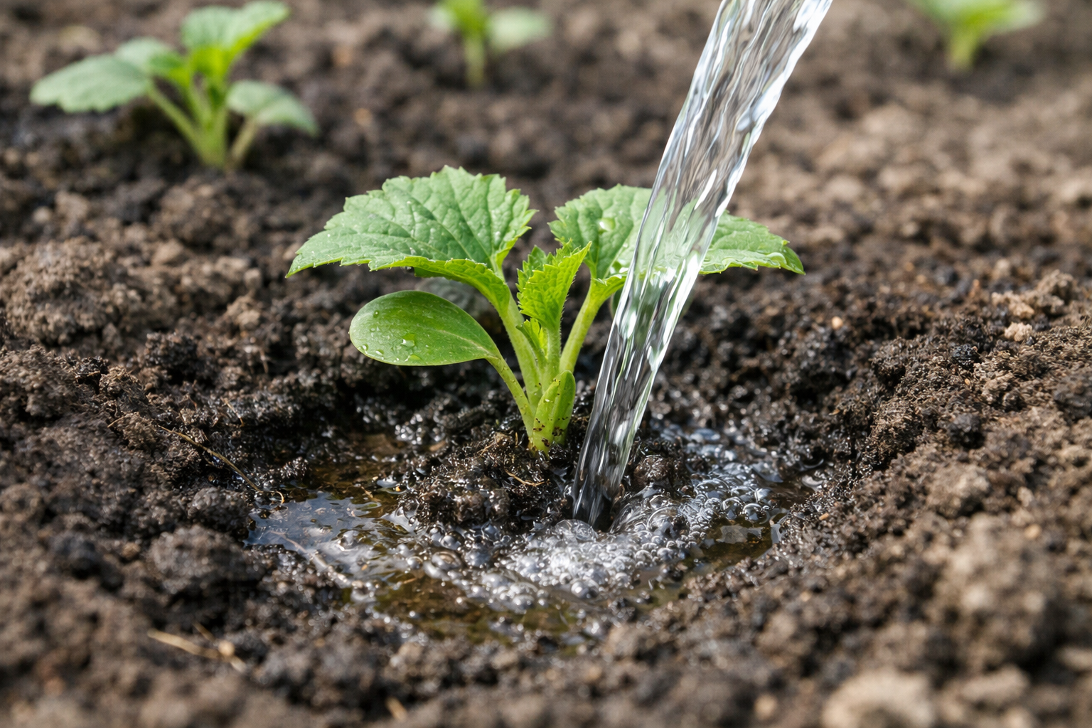Bevattning med kallt vatten orsakar extrem temperaturstress och stoppar omedelbart växtens utveckling.