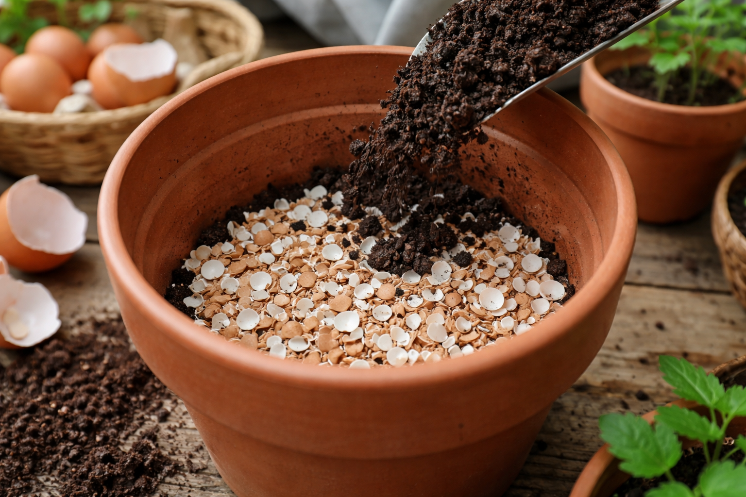 Kompetent applicering av livsmedelsrester förenklar planteringsvården och minskar riskerna för farliga rotsjukdomar. Denna beprövade metod eliminerar helt behovet av att leta efter specialiserade fyllmedel för trädgårdsbehållare. En förberedd leverans av bräckligt material säkerställer korrekt luftutbyte och hälsosam utveckling av alla växter på din fönsterbräda.