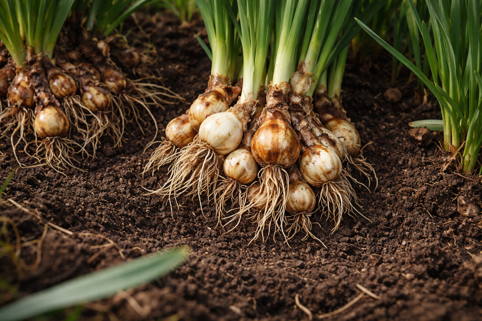 Hemlig nyans: gräva upp boet först efter att bladen har gulnat helt och lagt sig, så att alla näringsämnen har tid att återvända från den ovanjordiska delen till skalorna.