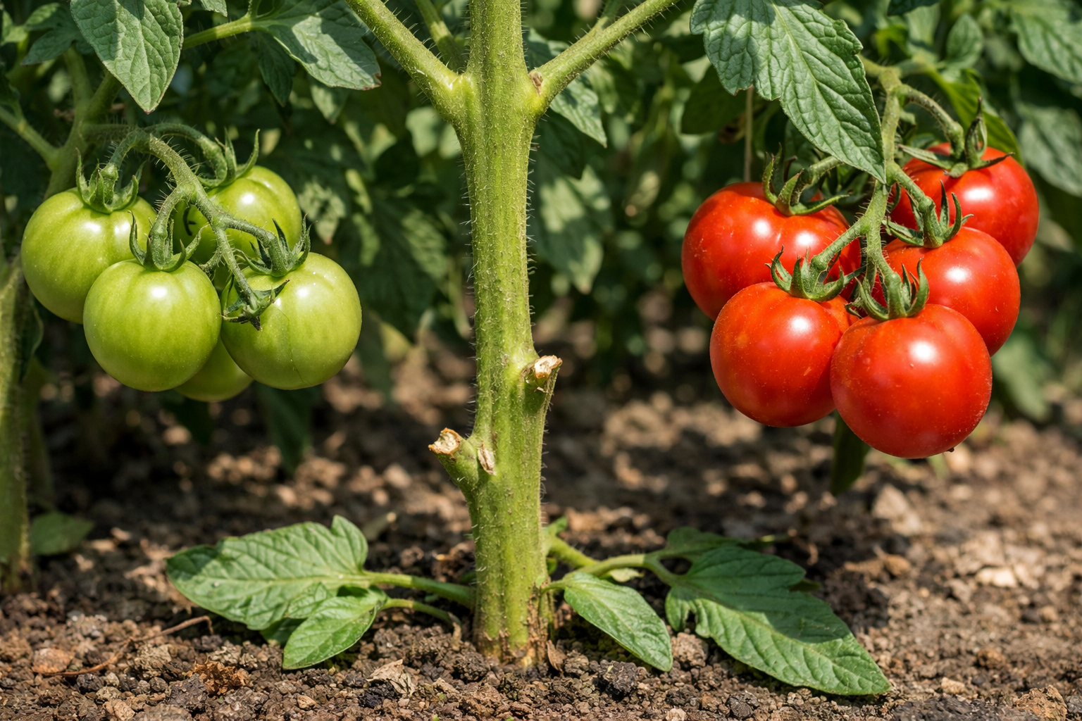 Att lämna friska bladverk bakom sig lagrar aktivt socker, vilket gör mognande tomater mycket sötare.