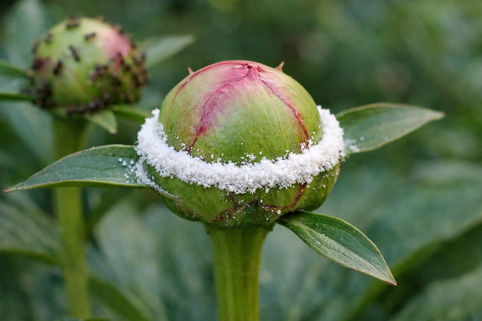 Vårens uppvaknande i trädgården åtföljs alltid av ökad insektsaktivitet. Myror är oemotståndligt attraherade av söt sirapsom de oöppnade kuporna av pioner utstrålar rikligt. Om situationen får stå för sig själv kan blommorna öppna sig snett, med skadade kronblad eller inte öppna sig alls.