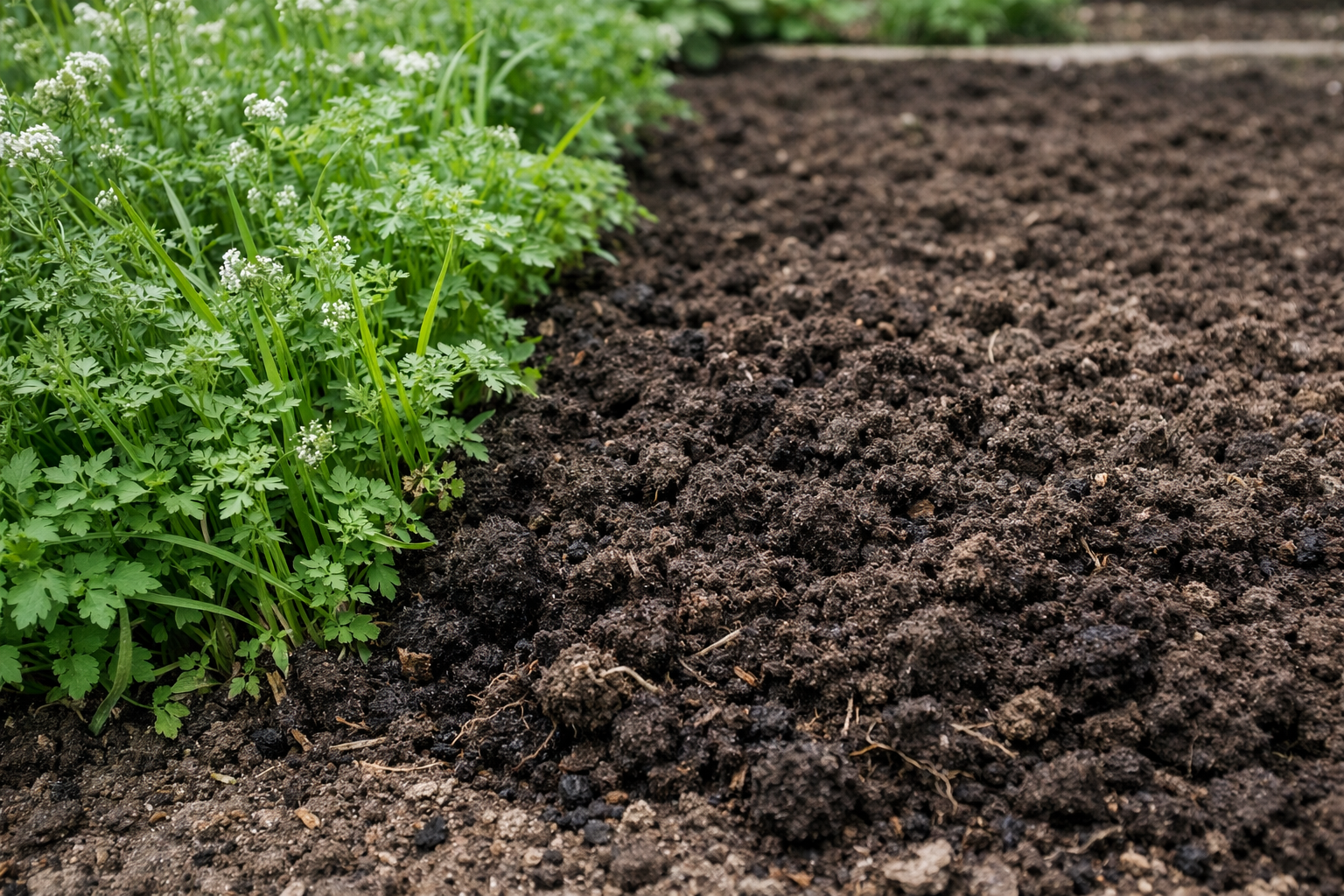 Det är tillräckligt att lätt införliva grönskan i matjorden utan att störa strukturen i de djupare lagren.