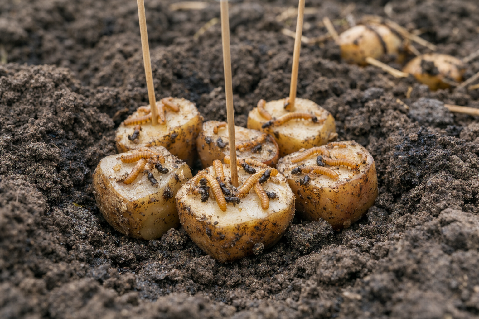 Vårstrategin går ut på att avleda insekterna från groende frön och späda knölar. Specialiserade fällor är idealiska för detta. På hösten flyttas fokus till att förändra markens struktur och kemiska sammansättning.