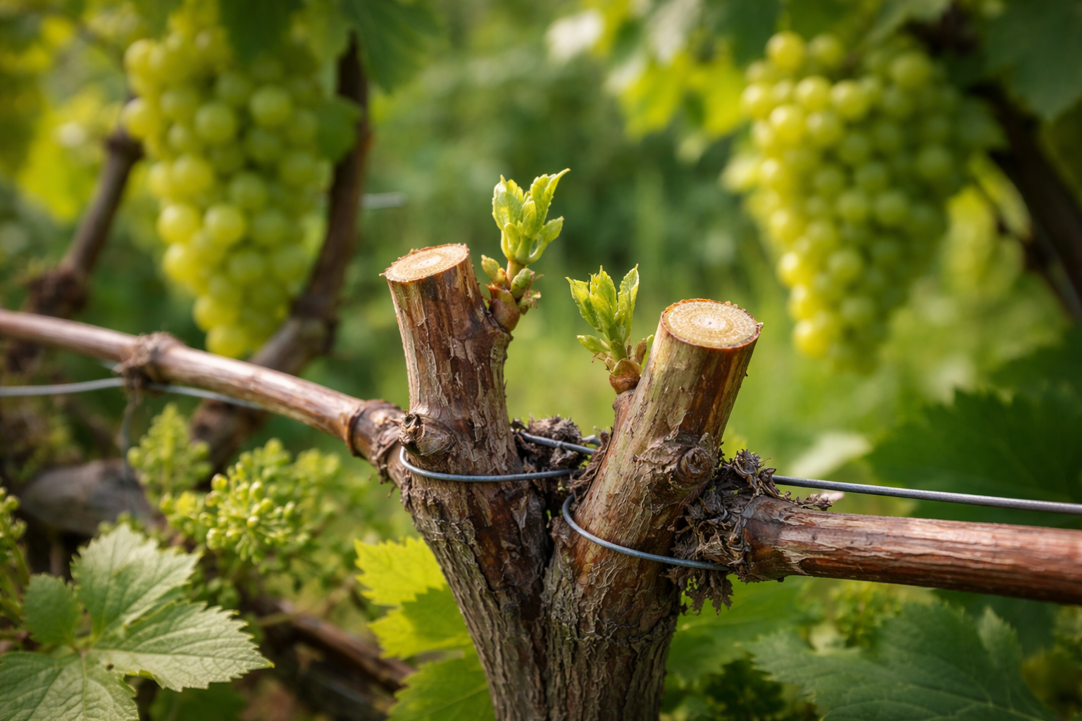 Var noga med att bilda en ordentlig fruktlänk från en ersättningsgren och en fruktbärande vinstock