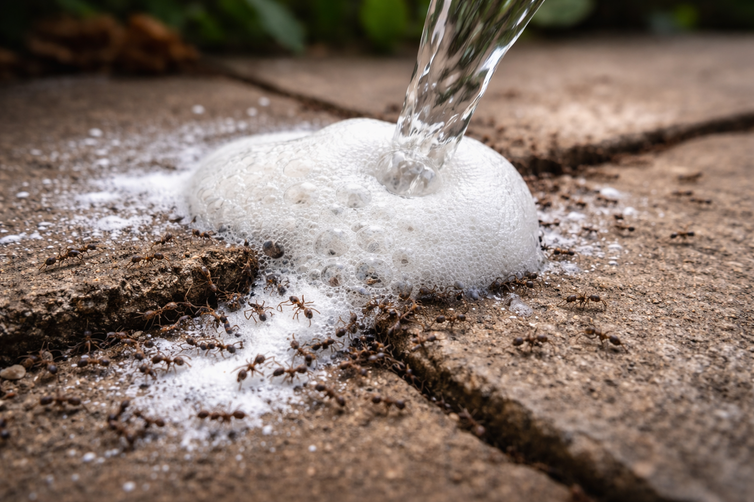 Ett stort misstag är att bara blanda ingredienserna i en hink och moppa golven. Hemligheten är att använda dem sekventiellt precis på myrspåren, vilket skapar en gasfrisättningsreaktion precis där skadedjuren samlas.