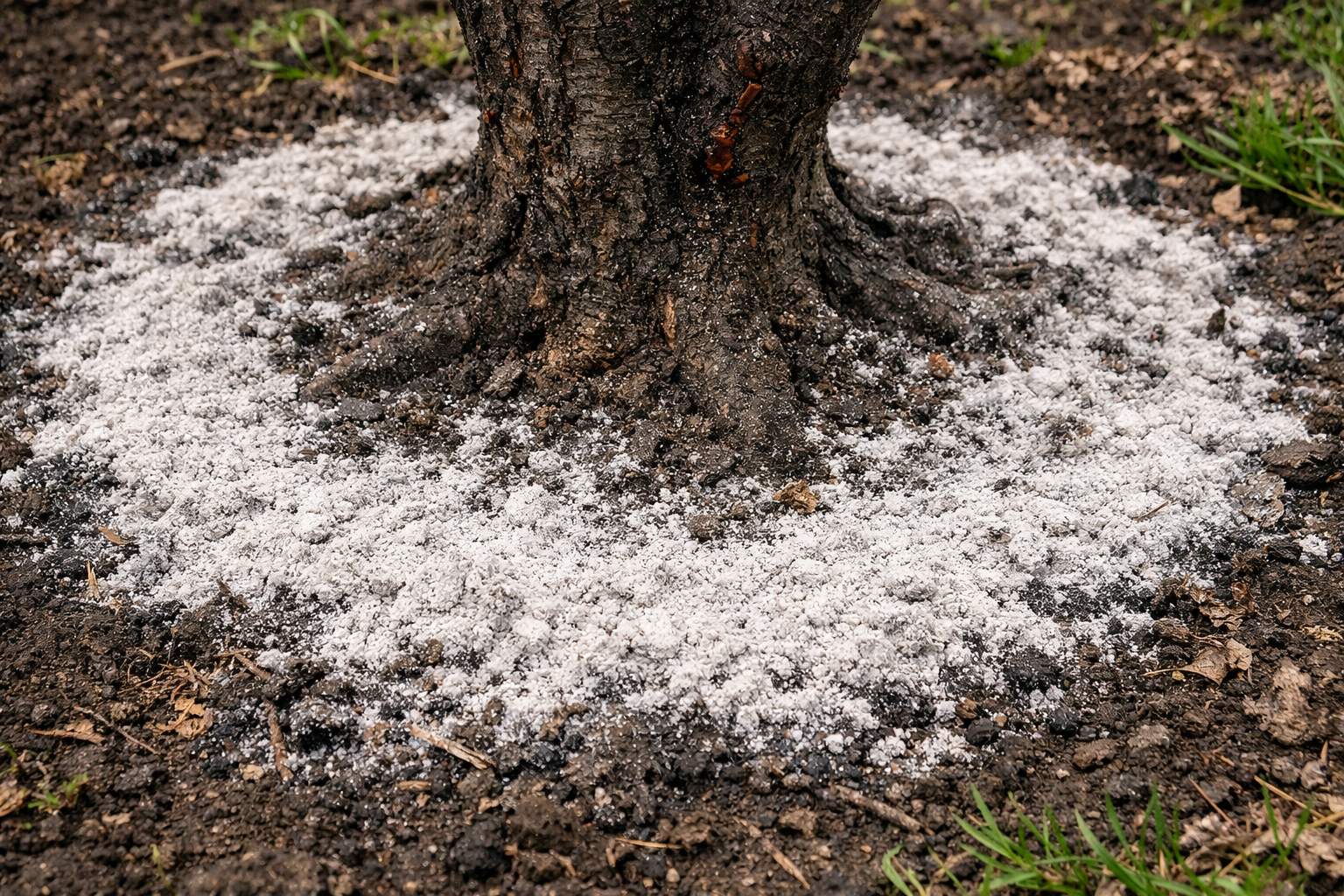 För bättre absorption av mineraler, sprid botemedlet runt hela kronans omkrets, indraget en halv meter från själva stammen. Det är vid kronans kanter som de tunna sugrötterna finns under jorden och är mest aktiva när det gäller att absorbera näring.